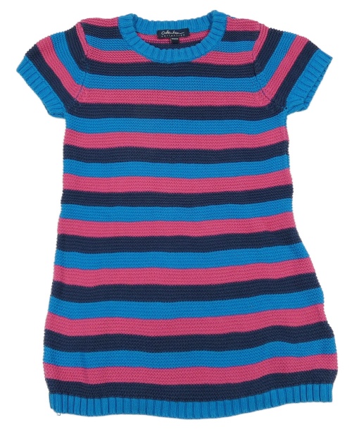 Modro-tmavmodro-ružové pruhované svetrové šaty