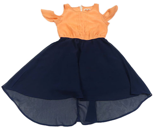 Tmavomodro-lososové šifónové šaty s volnými rameny Bluezoo