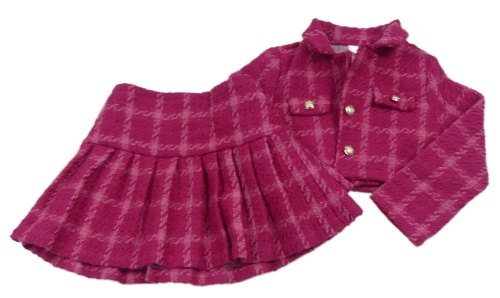 2 set - Tmavoružový úpletový crop kabátek + úpletová skladaná sukňa shein