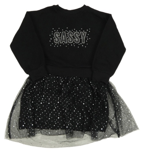 Čierne teplákovo/tylové šaty s nápisom a kamienkami a bodkami Matalan