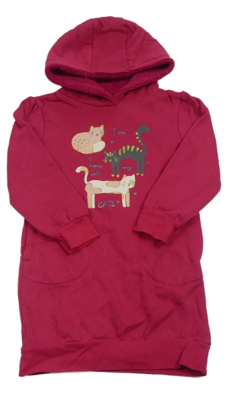 Fuchsiové teplákové šaty s mačkami a kapucňou Topolino