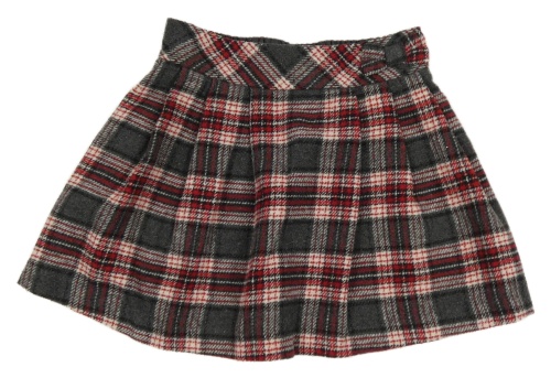 Sivo-červeno-smetanovo-čierna kockovaná vlnená sukňa s mašlou Tu