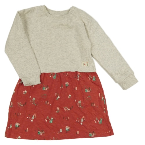 Svetlošedá -hrdzavé teplákovo/bavlněné šaty so zvieratkami a stromčekmi a domečky Nutmeg