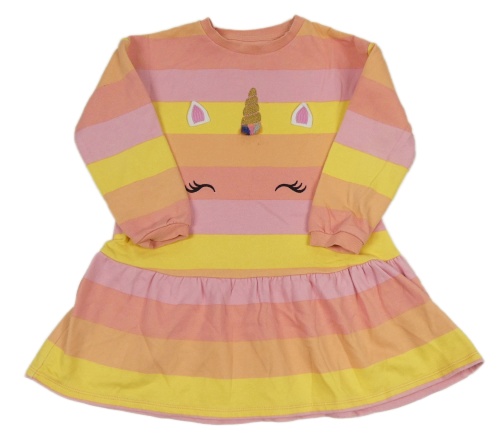 Ružovo-žlté pruhované teplákové šaty s jednorožcom F&F