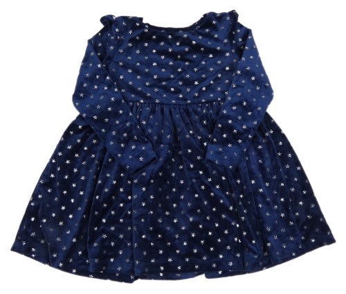 Tmavomodré plyšové šaty s hviezdami a volánikmi