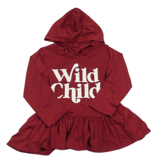 Vínová šatová tunika s nápisom a kapucňou