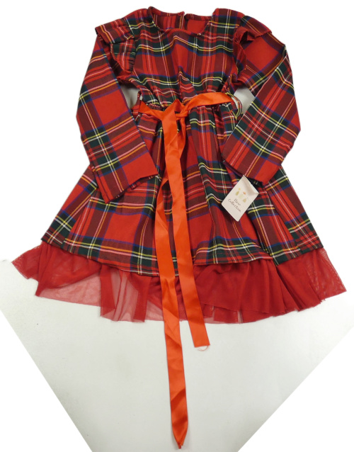 Nové - Červeno-farebné kockované šaty s opaskom a volánikmi