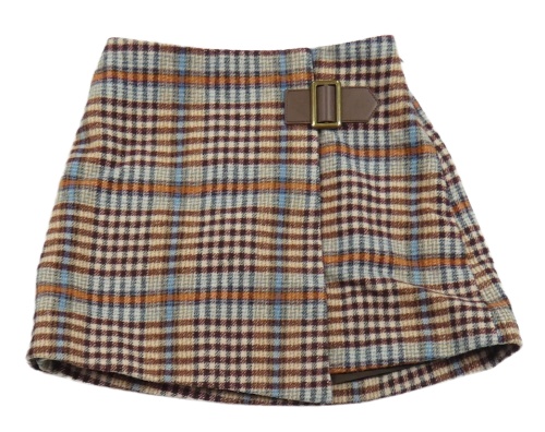 Vínovo-modro-oranžová kockovaná vlnená sukňa Next