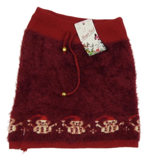 Nové - vínová chlpatá pletená sukňa so sněhuláky