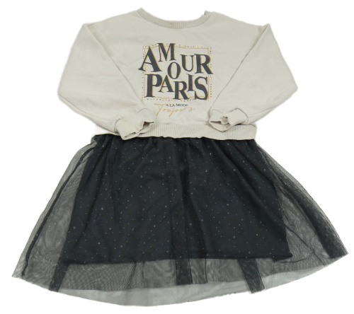 Světlebéžovo-tmavosivé teplákovo/tylové šaty s nápisom Matalan