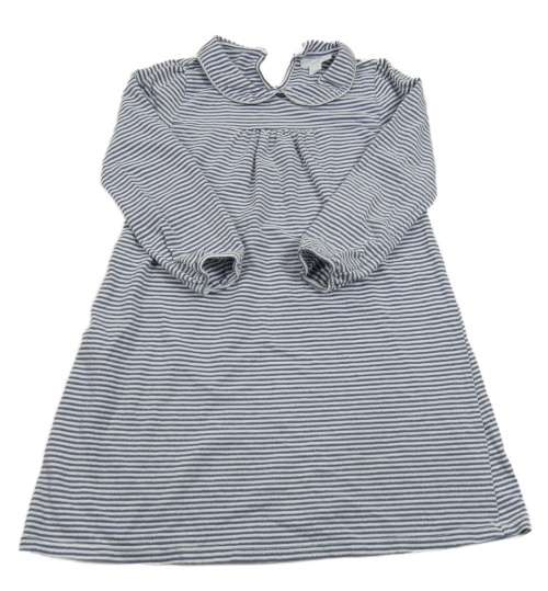 Bielo-modro-strieborné pruhované šaty s golierikom