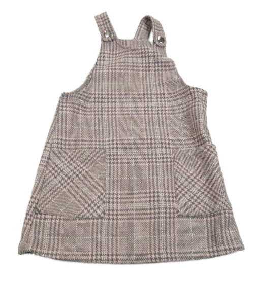 Ružovo-sivé kockované trblietavé vlnené na traké šaty Matalan