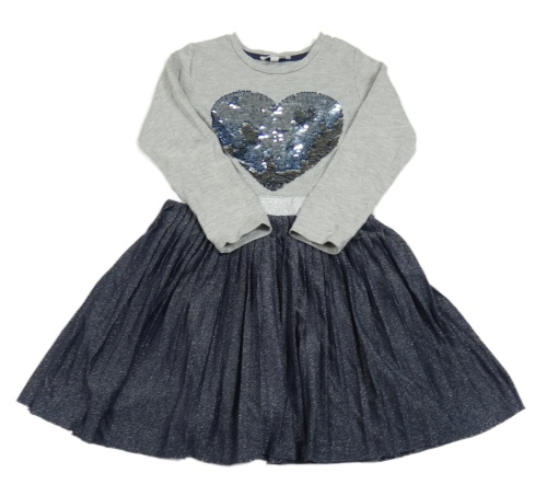 Sivo-tmavomodré bavlněno/třpytivé šaty so srdcem z překlápěcích flitrů Bluezoo