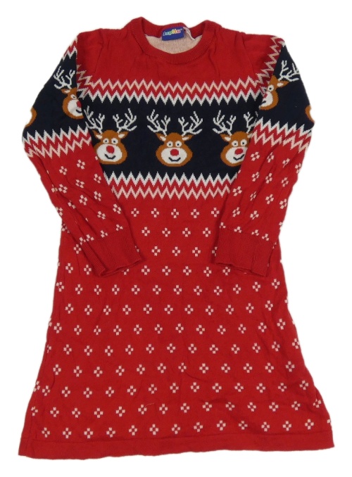 Červeno-tmavomodré vzorované pletené šaty so sobmi Lupilu