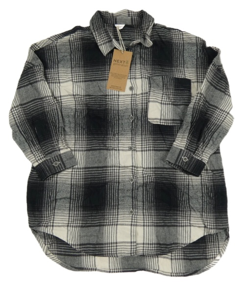 Nové - Čierno-sivé kockované prepínaci košeľové oversize šaty Next
