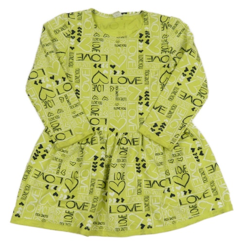 Limetkové teplákové šaty s nápismi a srdiečkami