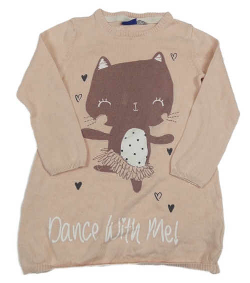 Svetloružové pletené šaty s mačkou Lupilu