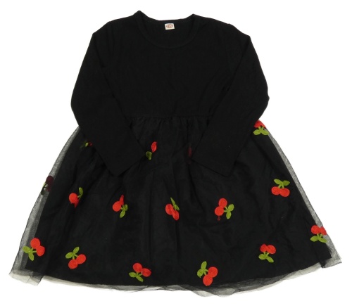 Čierne rebrované šaty s tylovou sukní s třešněmi