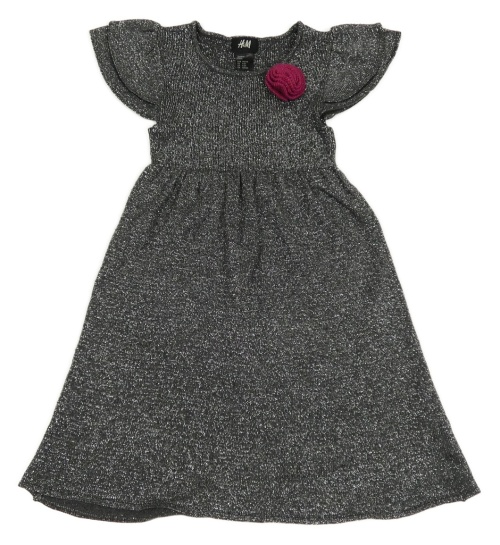 Tmavošedo-strieborné melírované úpletové šaty s 3D květem H&M