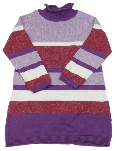 Fialovo-vínovo-biele svetrové šaty so trblietkami a rolákom INFINITY KIDS