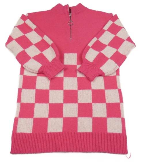 Ružové kockované svetrové šaty
