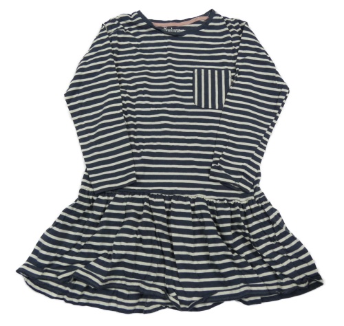 Tmavomodro-smotanové pruhované bavlnené šaty s vreckom Nutmeg