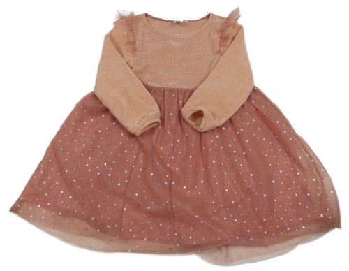 Pudrovo-staroružové žinylkovo/tylové šaty s hviezdičkami a volánikmi POCOPIANO