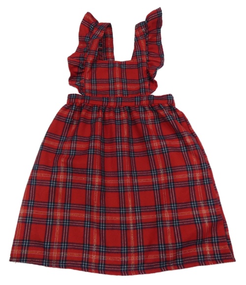Červeno-tmavomodro-bielo-zlatá kockovaná na traká sukňa s volánikmi PRIMARK