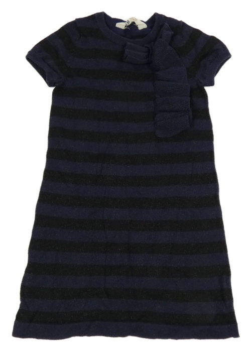 Tmavomodro-čierne pruhované pletené šaty s volánikom H&M