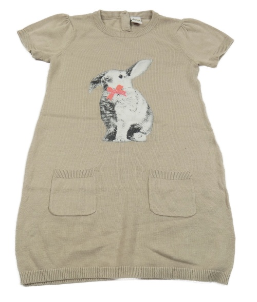 Béžové svetrové šaty s králikom a vreckami Papagino