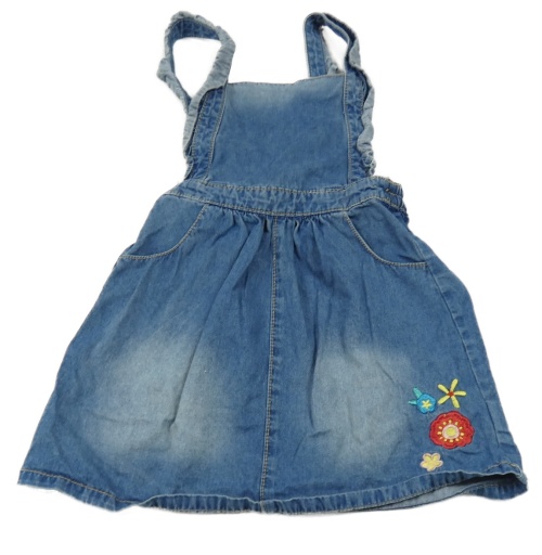 Modrá rifľová na traká sukňa s kvietkami Matalan