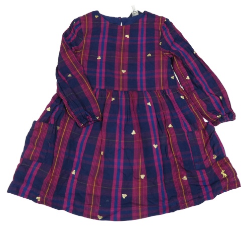 Ružovo-tmavomodré kockované šaty so zlatými srdiečkami Joules