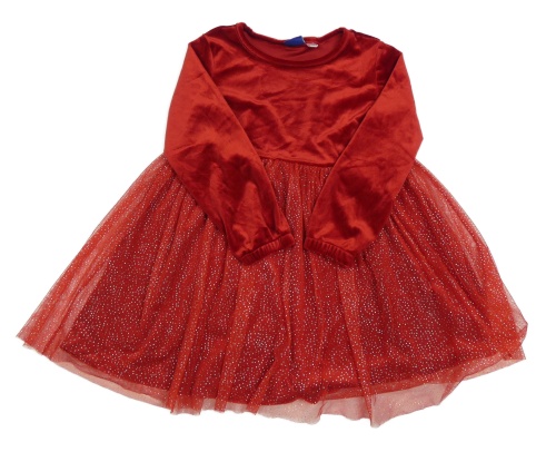 Červené plyšovo/tylové šaty s bodkami Lupilu