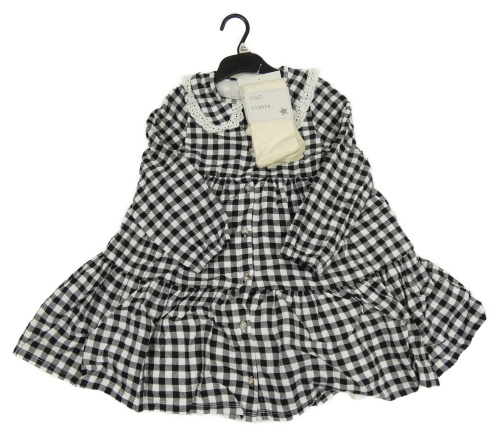 Nové - Čierno-biele kockované šaty s golierikom s madeirou + smetanové punče F&F