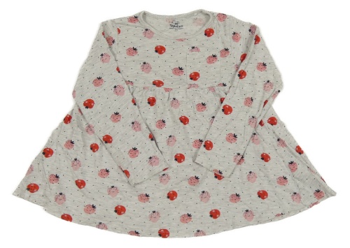Sivá melírovaná šatová tunika s jahůdkami a vreckom Topolino