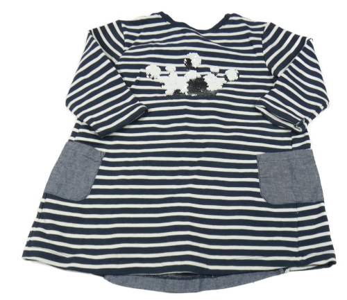 Tmavomodro-biela pruhovaná tepláková tunika s korunkou z flitrů Vertbaudet