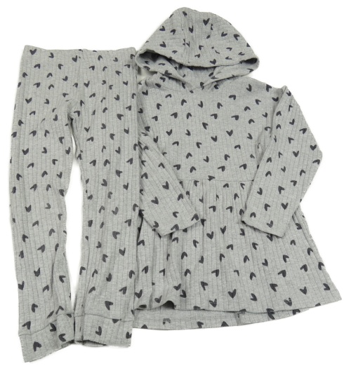 2set - Sivá melírovaná rebrovaná šatová tunika so srdiečkami a kapucí + ľahké tepláky Nutmeg