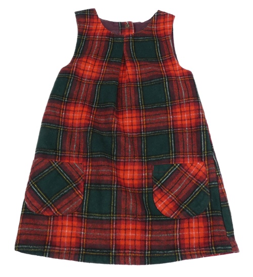 Červeno-tmavozeleno-čierne kockované vlnené šaty Nutmeg