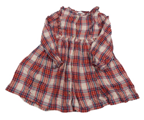 Béžovo-červeno-tmavomodré kockované flanelové prepínaci šaty s volánikmi M&S