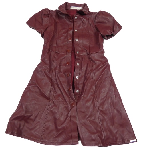 Vínové koženkové prepínaci šaty s balonovými rukávy C&A