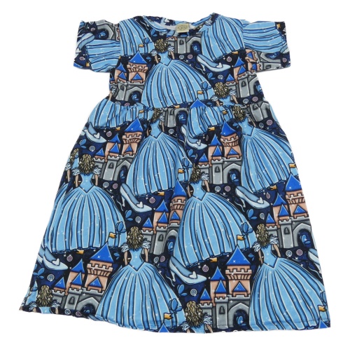 Tmavomodré šaty s princeznami a hrady