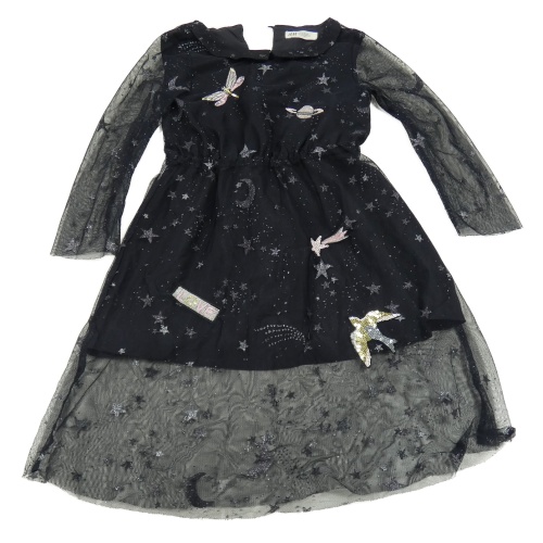 Čierne tylové šaty s hviezdami a nášivkami H&M