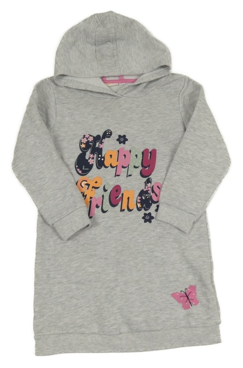 Sivé melírované teplákové šaty s nápisom a kapucňou Kids