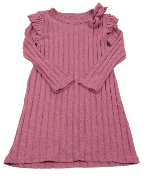 Ružové melírované rebrované úpletové šaty s volánikmi