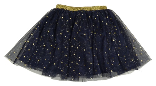 Tmavomodrá tylová sukňa s bodkami a zlatým pasom Kiki&Koko