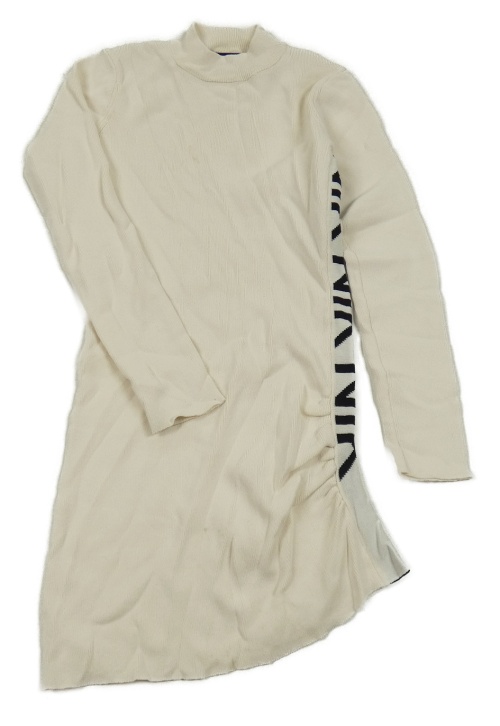 Smotanové šaty s nápisem, nařasením a rolákom NIK&NIK