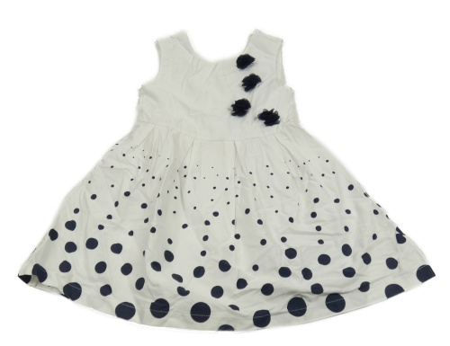 Bielo-tmavomodré šaty s bodkami a 3D kvety Vertbaudet