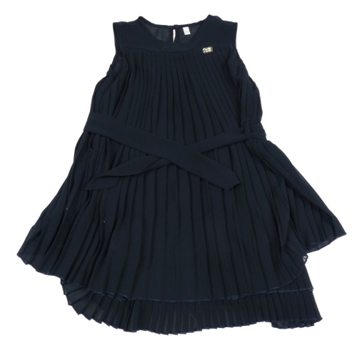 Tmavomodrá šifónová plisovaná šatová tunika s opaskom