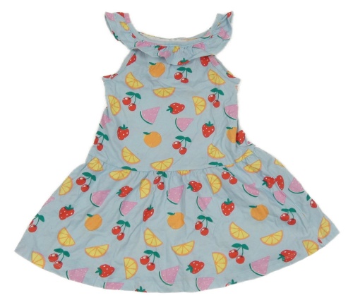 Svetlomodré letné šaty s ovociem a melónmi a jahůdkami a volánikom PRIMARK