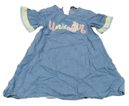 Světlemodré lehké šaty riflového vzhledu s farebným nápisom